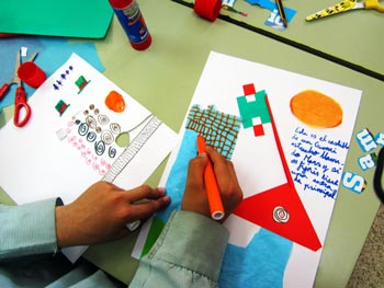 Se trata de un taller para jugar con la geometría. Primero se trata de descubrir qué figuras geométricas existen en la naturaleza, en la ciudad o en los objetos. Después, se crean personajes, paisajes y mundos nuevos a partir de estas formas geométricas básicas.