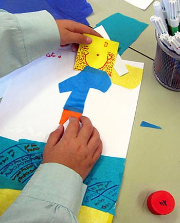 Un niño recibe un papelito triangular de color verde y lo convierte en la barriga de un Geomi. Si es amarillo y cuadrado, entonces es la cabeza del Niño Geomi. Si es azul y redondo es un Súperpez Geomi. Si es rojo y rectangular, entonces es …