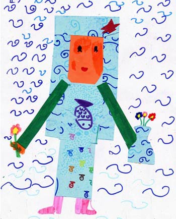 «Es la Sirena Geomi con un traje de mar. Y tiene un regalo para el señor chino del sol «. (María, 7 años)